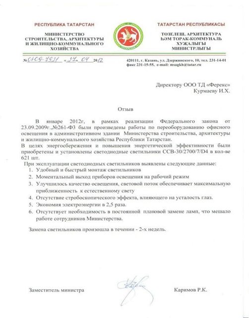 «Отсутствует необходимость в постоянной плановой замене ламп, что мешало работе сотрудников Министерства»