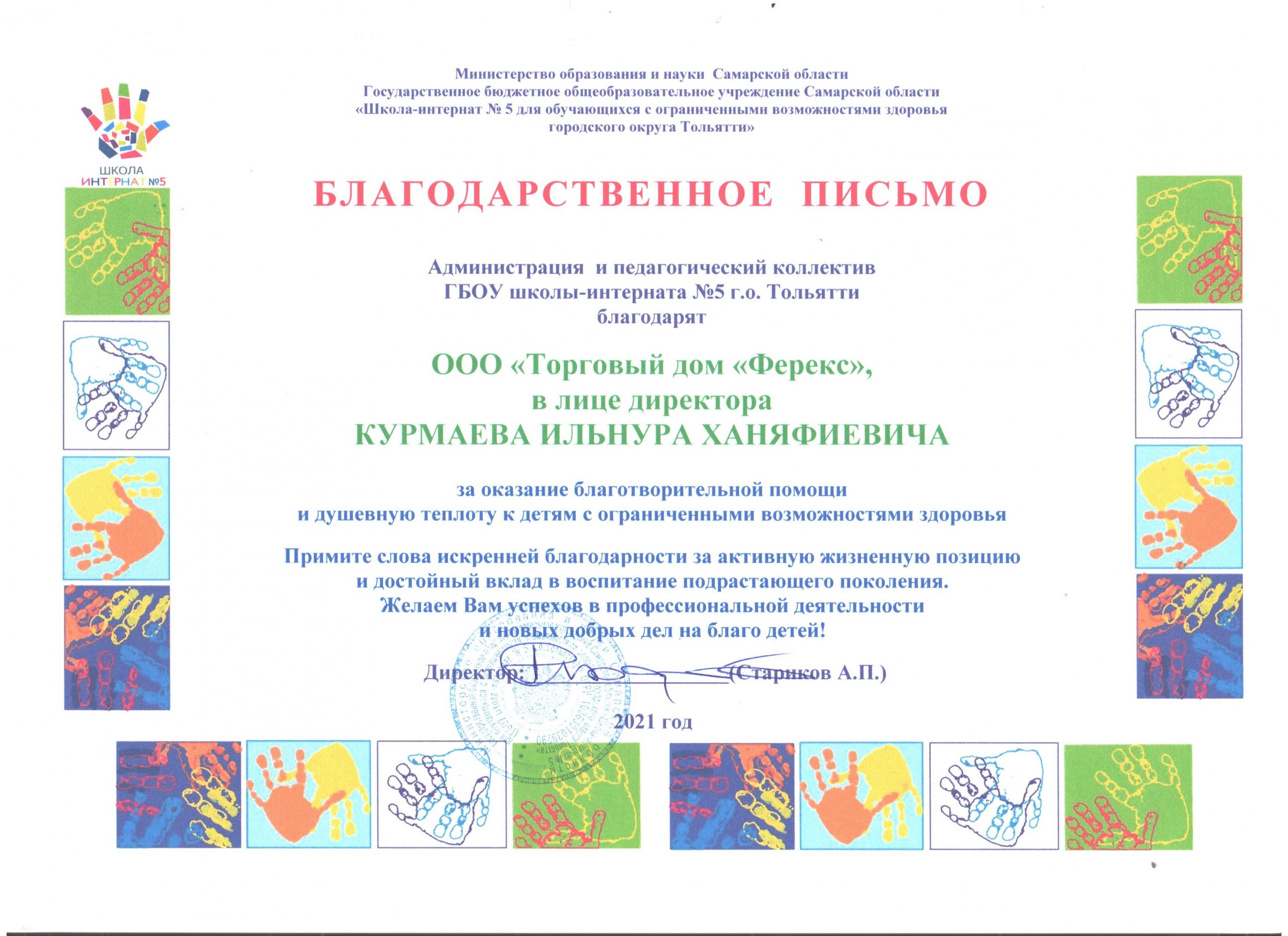 "Благодарим ООО "ТД" ФЕРЕКС" за оказанную благотворительную помощь".